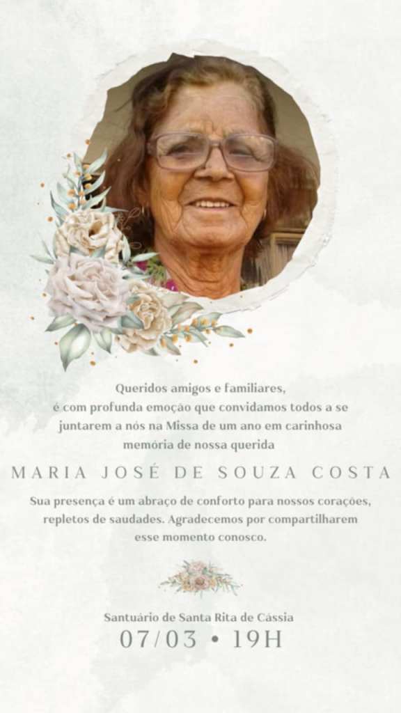 MISSA DE UM ANO DE FALECIMENTO – Maria José de Souza Costa