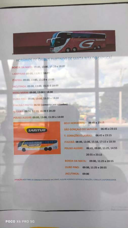 Horários de ônibus partindo de Santa Rita do Sapucaí