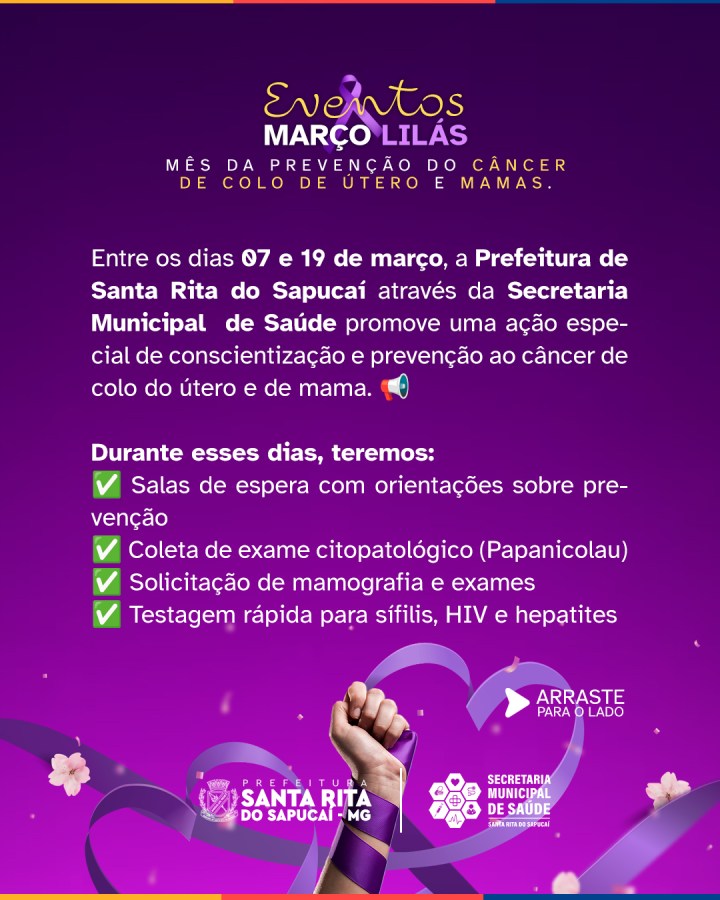 Março Lilás: mês de prevenção ao câncer de colo de útero e mama