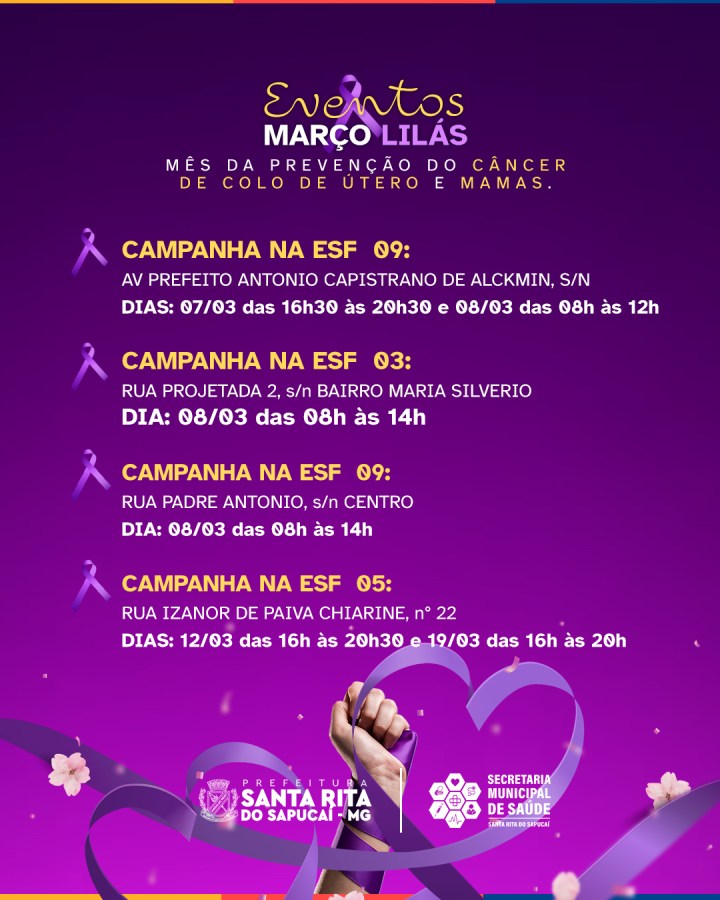 Março Lilás: mês de prevenção ao câncer de colo de útero e mama