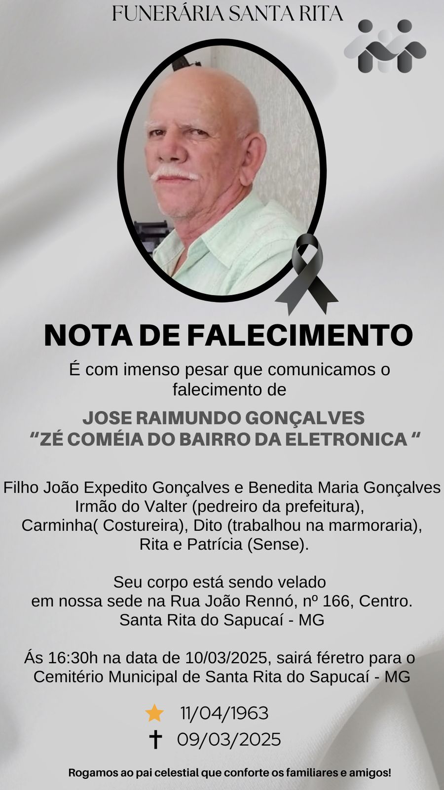 A imagem da nota é fornecida pela Funerária Santa Rita.