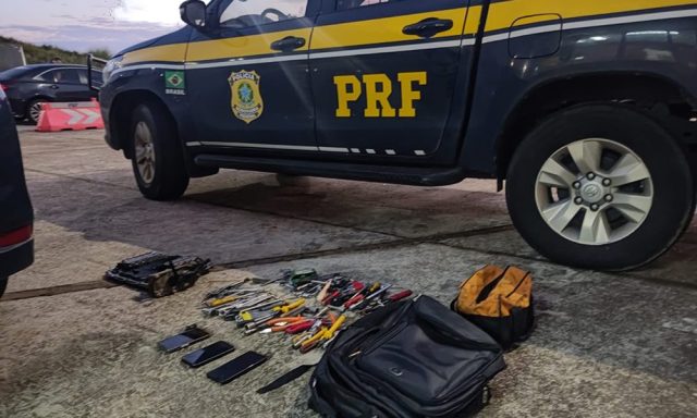 No carro, estavam três homens, de 22, 25 e 26 anos, sendo que o motorista não possuía carteira de habilitação. No interior do veículo, foram encontradas ferramentas como alicates, chaves de fenda e de boca, além de duas facas.