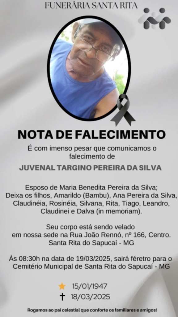 A imagem da nota é fornecida pela Funerária Santa Rita.
