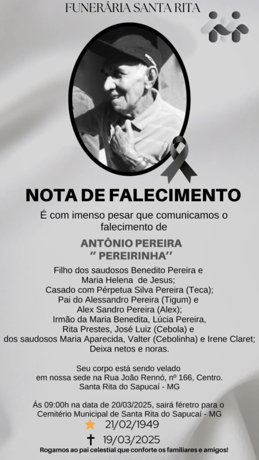 A imagem da nota é fornecida pela Funerária Santa Rita.