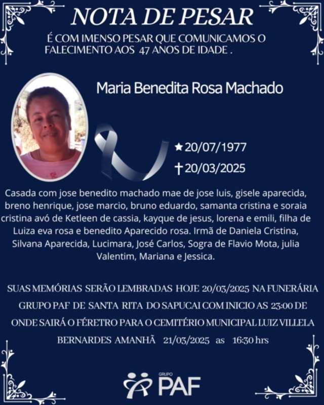 A imagem da nota é fornecida pela Funerária Grupo PAF.