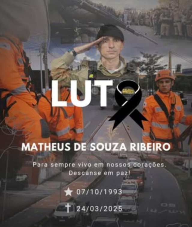 O corpo do soldado da Polícia Militar, Matheus de Souza Ribeiro, de 31 anos, que morreu ao tentar impedir um homem de pular do Viaduto das Américas, sobre a BR-040, em Contagem, na Grande BH, foi sepultado nesta terça-feira (25/3), às 17h, no Cemitério Bosque da Esperança, em Belo Horizonte.