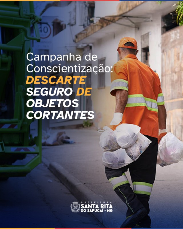 A Prefeitura de Santa Rita do Sapucaí alerta toda a população sobre os perigos do descarte inadequado de objetos cortantes no lixo comum. Esses materiais podem causar ferimentos graves nos trabalhadores da coleta de lixo e em outras pessoas. Vamos juntos proteger a nossa cidade!
