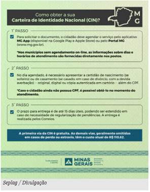 Para ter acesso a todas as informações sobre a Carteira de Identidade Nacional, inclusive agendamento do serviço, clique aqui.
