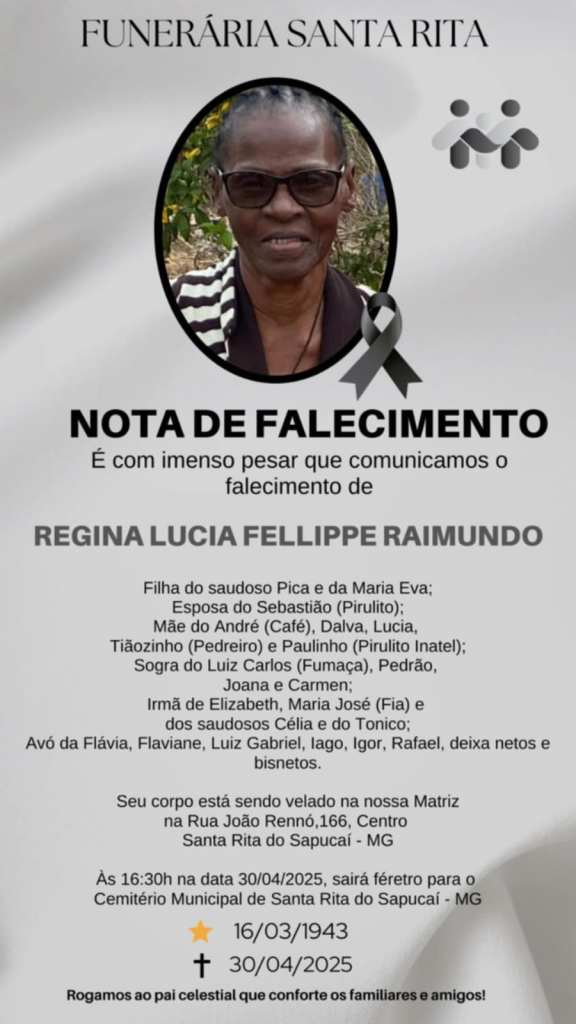 NOTA DE FALECIMENTO – Regina Lucia Fellippe Raimundo