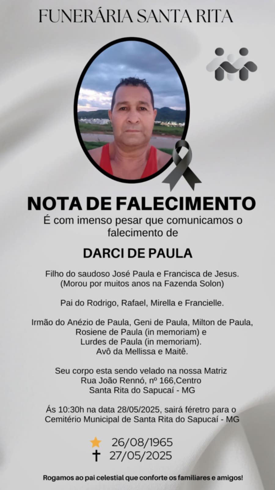 A imagem da nota é fornecida pela Funerária Santa Rita.