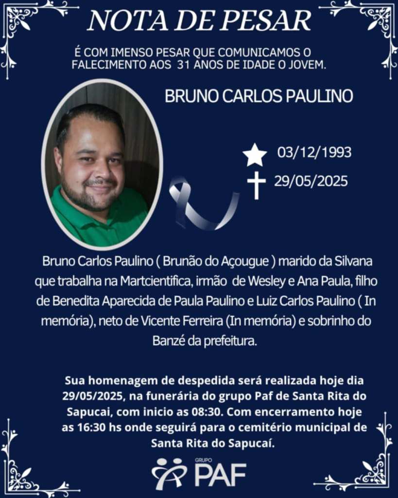 NOTA DE FALECIMENTO – Bruno Carlos Paulino