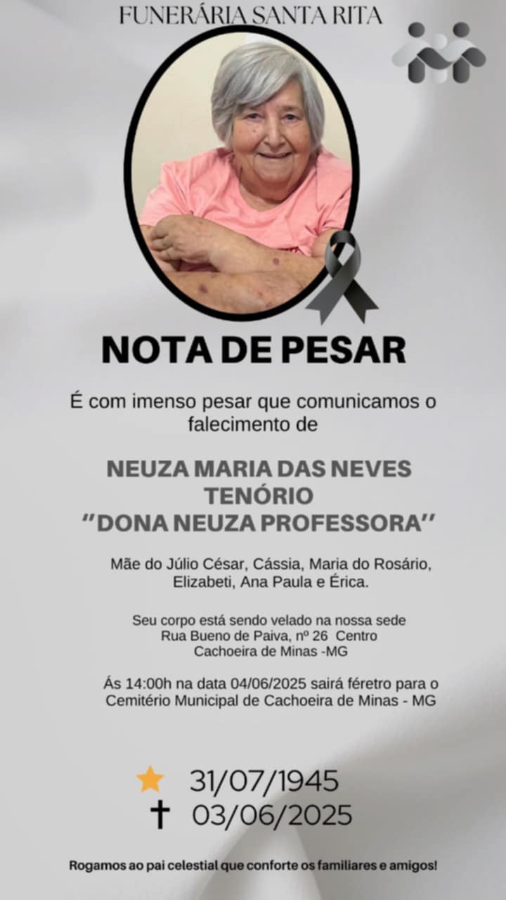 NOTA DE FALECIMENTO – Neuza Maria das Neves Tenório