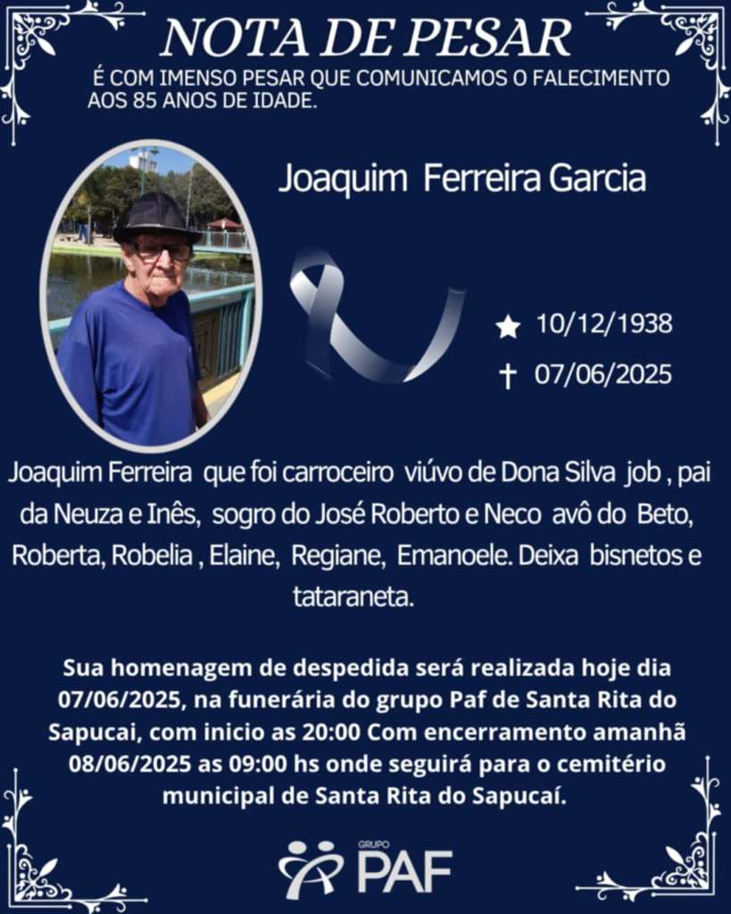 NOTA DE FALECIENTO – Joaquim Ferreira Garcia