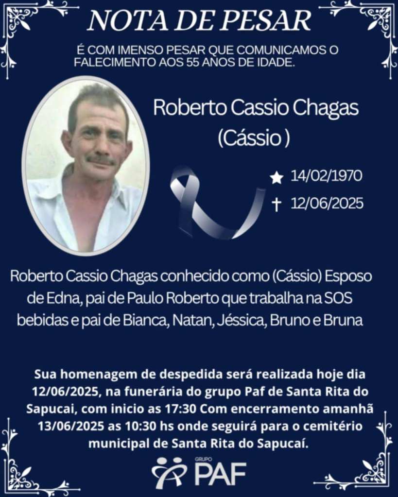NOTA DE FALECIMENTO – Roberto Cassio Chagas