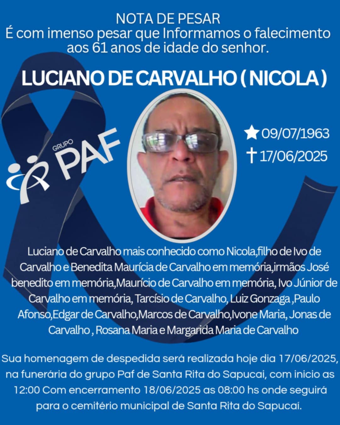 NOTA DE FALECIMENTO – Luciano de Carvalho