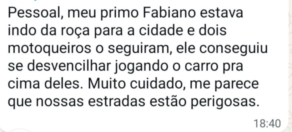 Ontem, domingo(29), novamente motos seguiram mais veículos na mesma estrada, vejam o relato no grupo de whatsapp de moradores daquela região.