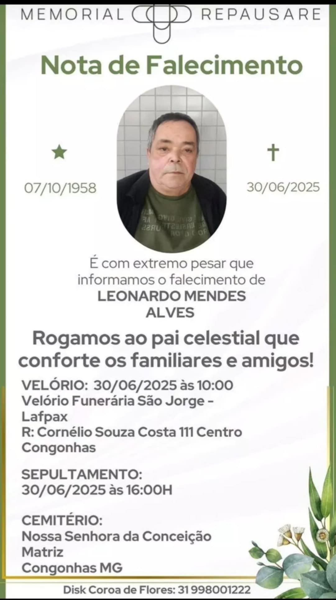 NOTA DE FALECIMENTO – Leonardo Mendes