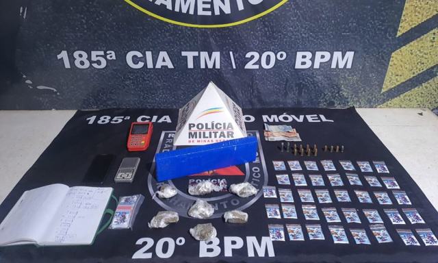 Durante a busca, foram apreendidos cerca de um quilo de maconha, 38 porções de cocaína, 14 munições de diversos calibres, uma balança de precisão, um caderno com registros de transações, embalagens para drogas, R$ 212 em espécie e dois celulares.