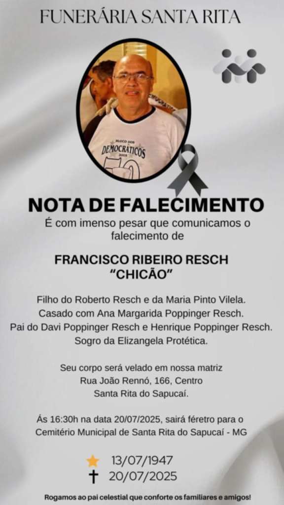 NOTA DE FALECIMENTO – Francisco Ribeiro Resch