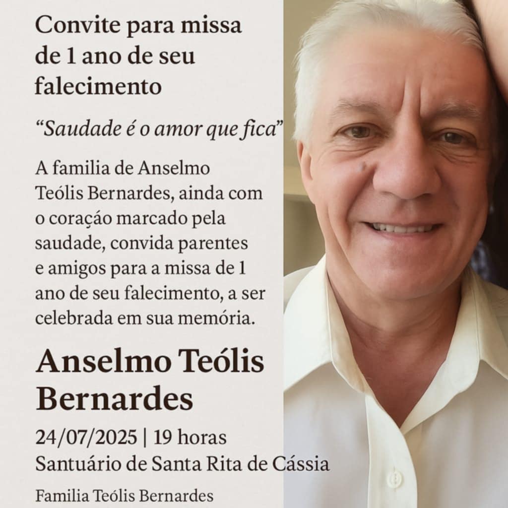MISSA DE UM ANO DE FALECIMENTO – Anselmo Teólis Bernardes