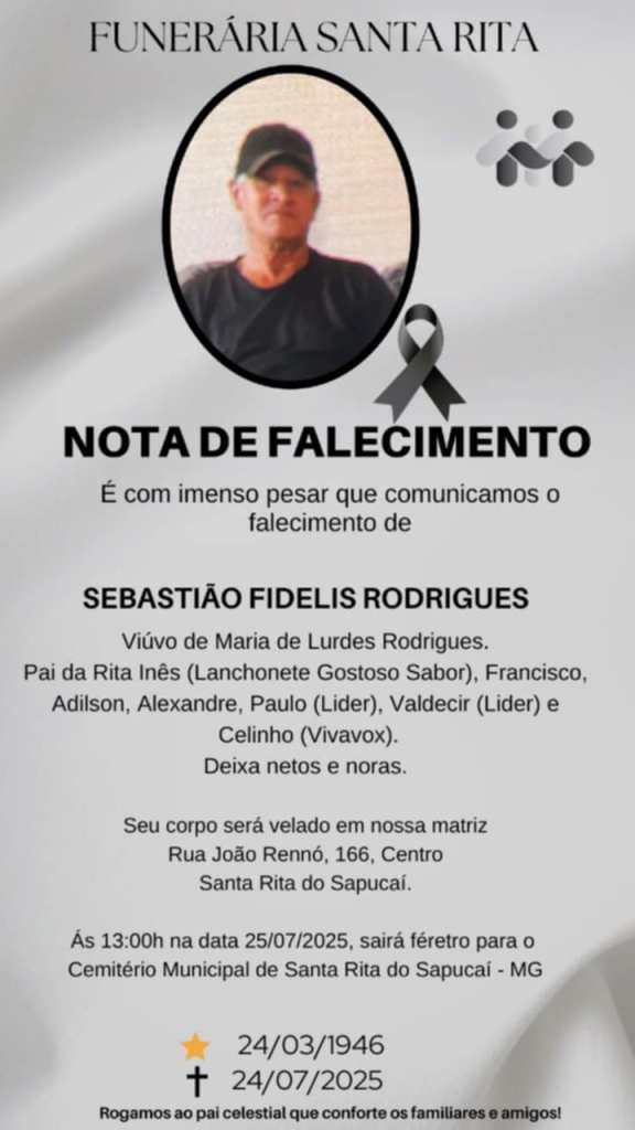 NOTA DE FALECIMENTO – Sebastião Fidelis Rodrigues