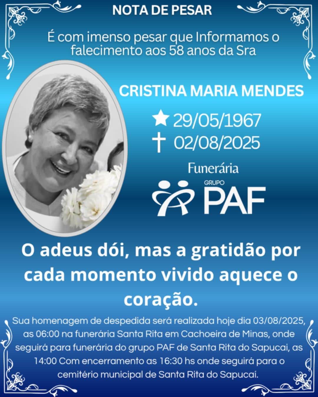 NOTA DE FALECIMENTO – Cristina Maria Mendes