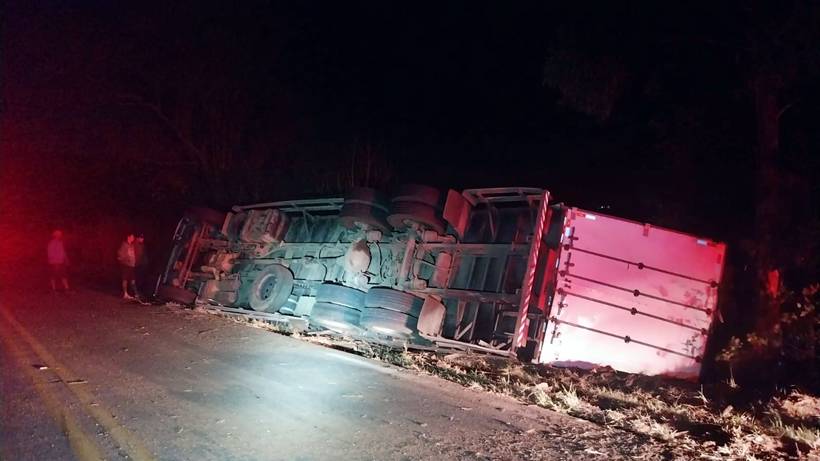 Caminhão tomba na BR-459 após manobra arriscada de outro veículo em Itajubá