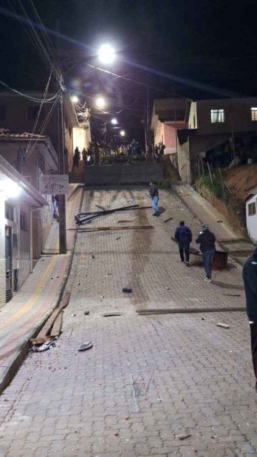 Caminhão sem freios colide com coreto e veículos no Centro de Tocos do Moji