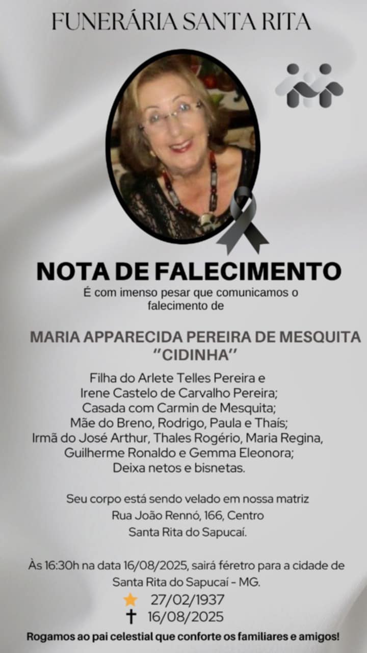 A imagem da nota é fornecida pela Funerária Santa Rita.