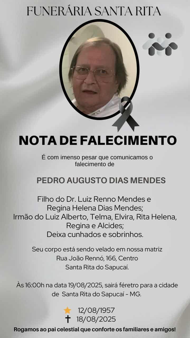 NOTA DE FALECIMENTO – Pedro Augusto Dias Mendes