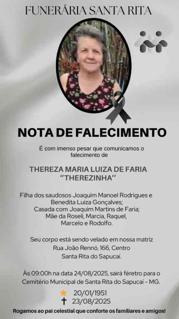 NOTA DE FALECIMENTO – Thereza Maria Luiza de Faria