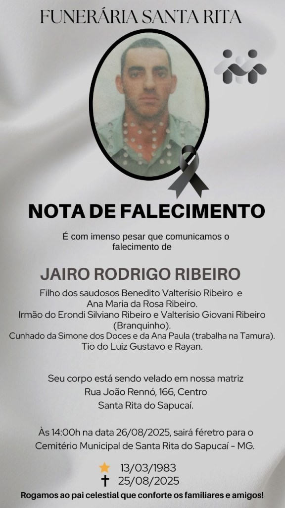 Nota de Falecimento – Jairo Rodrigo Ribeiro