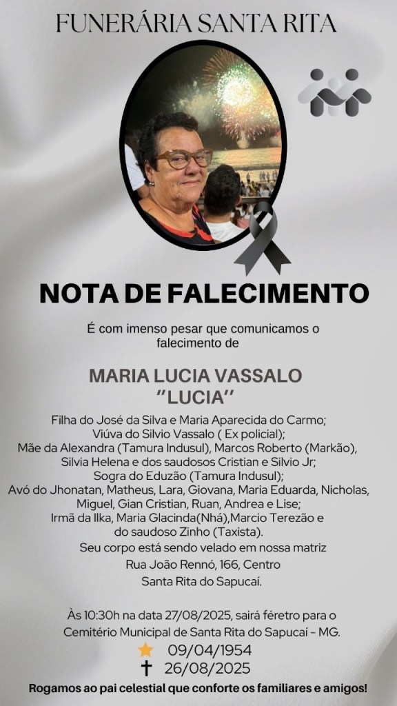 A imagem da nota é fornecida pela Funerária Santa Rita.