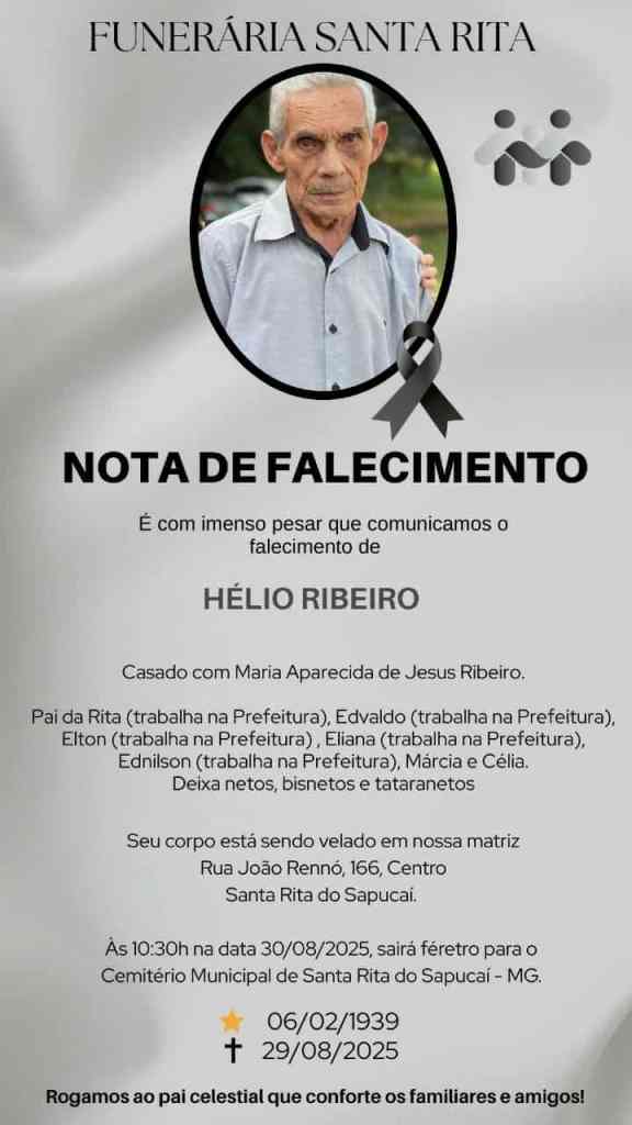 A imagem da nota é fornecida pela Funerária Santa Rita.