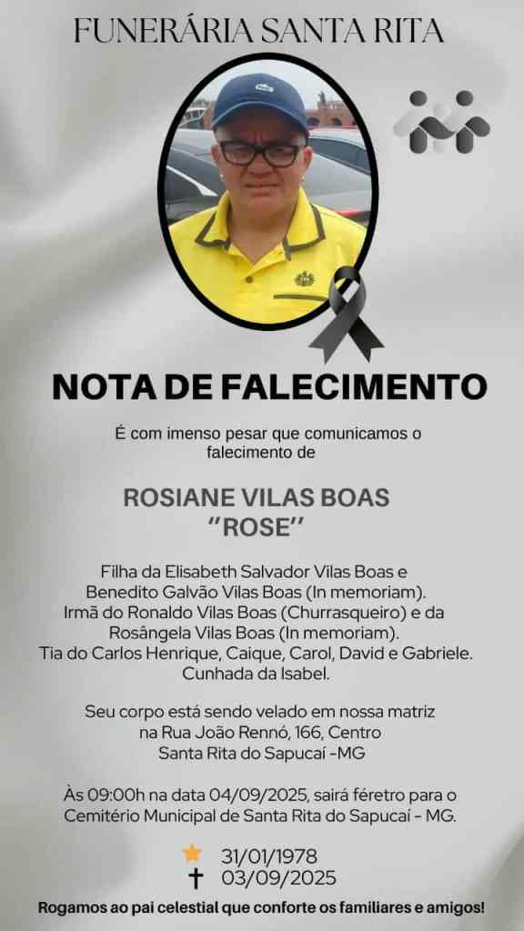 A imagem da nota é fornecida pela Funerária Santa Rita.
