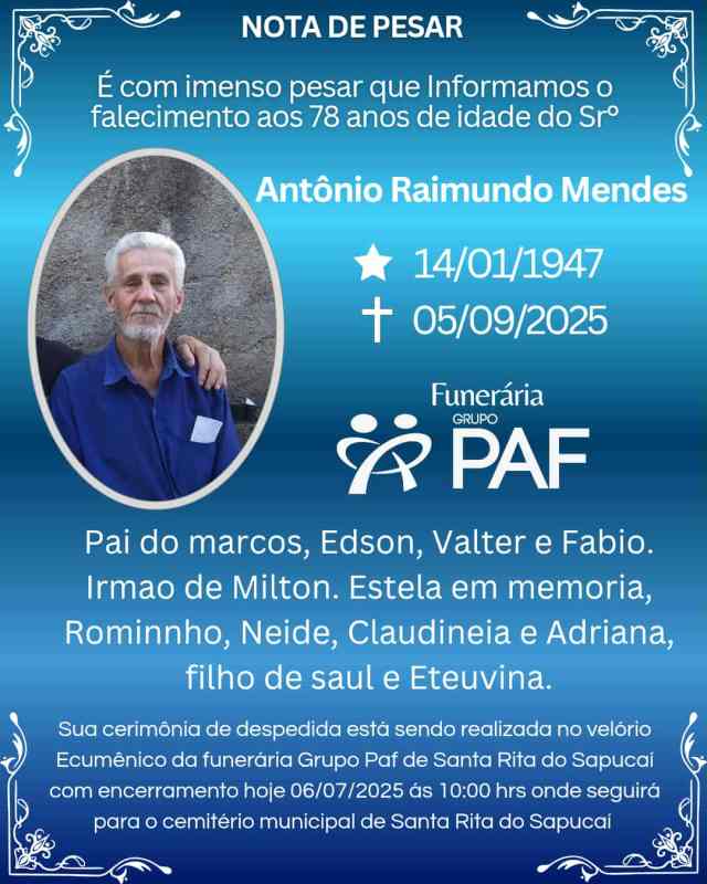 NOTA DE PESAR – Antônio Raimundo Mendes