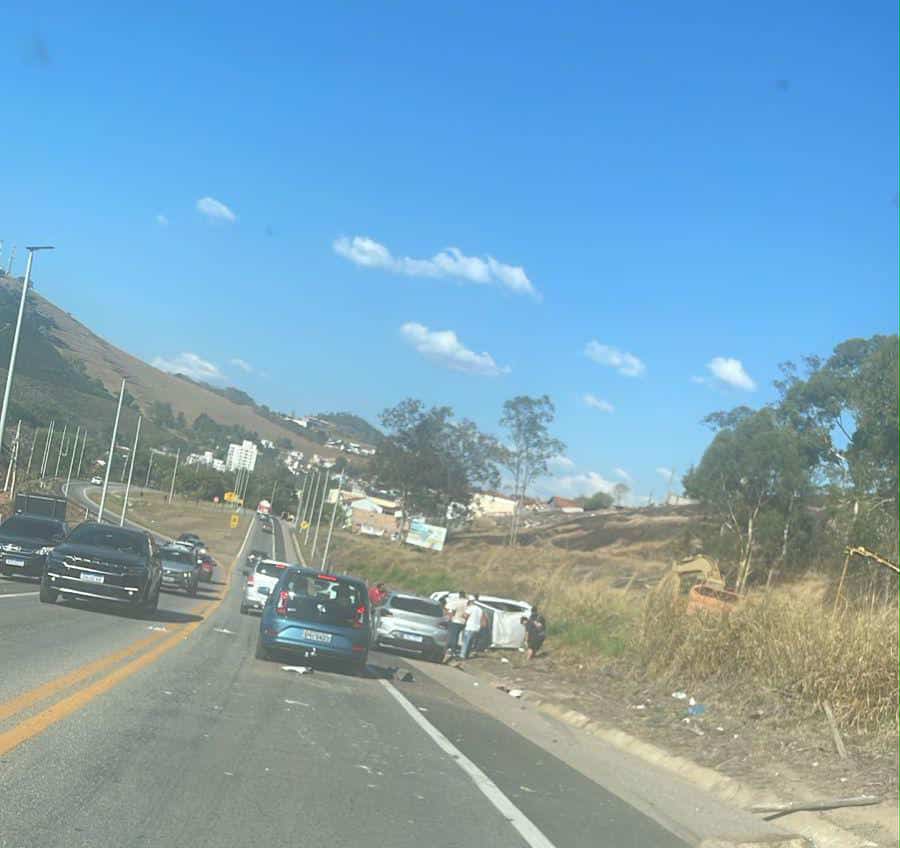 Motorista adormece ao volante e capota carro na BR-459 em Santa Rita do Sapucaí