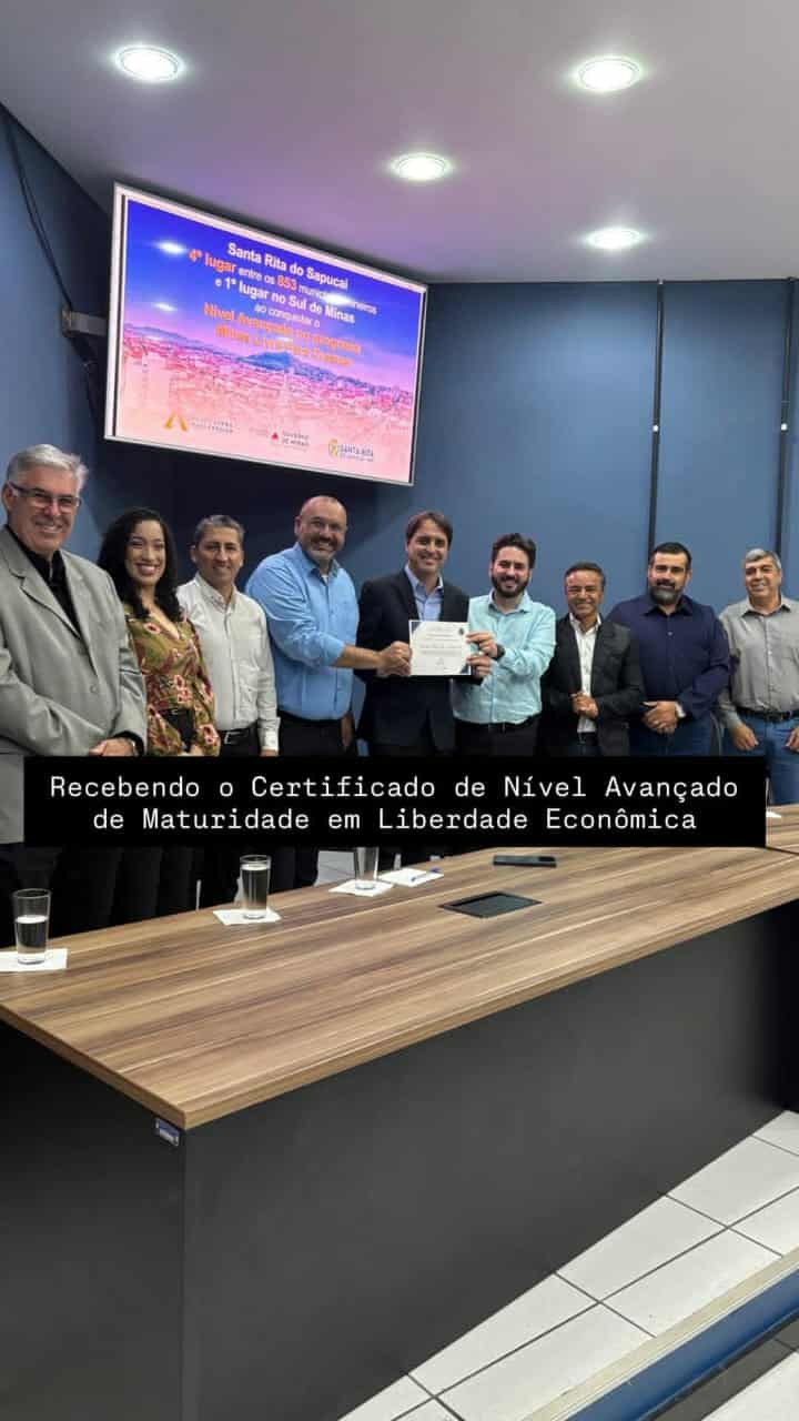 Em cerimônia na noite de quarta-feira(17), em Santa Rita do Sapucaí, Bruno Araújo, Secretário do Estado de Minas Gerais de Desenvolvimento Econômico fez a entrega do prêmio de quarto município dos 853 do estado de Minas Gerais a atingir o Nível Avançado de Maturidade em Liberdade Econômica, sendo então o primeiro município do Sul de Minas.