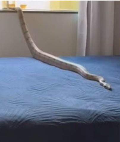 Bombeiros resgatam jiboia em cima de cama em residência de Unaí