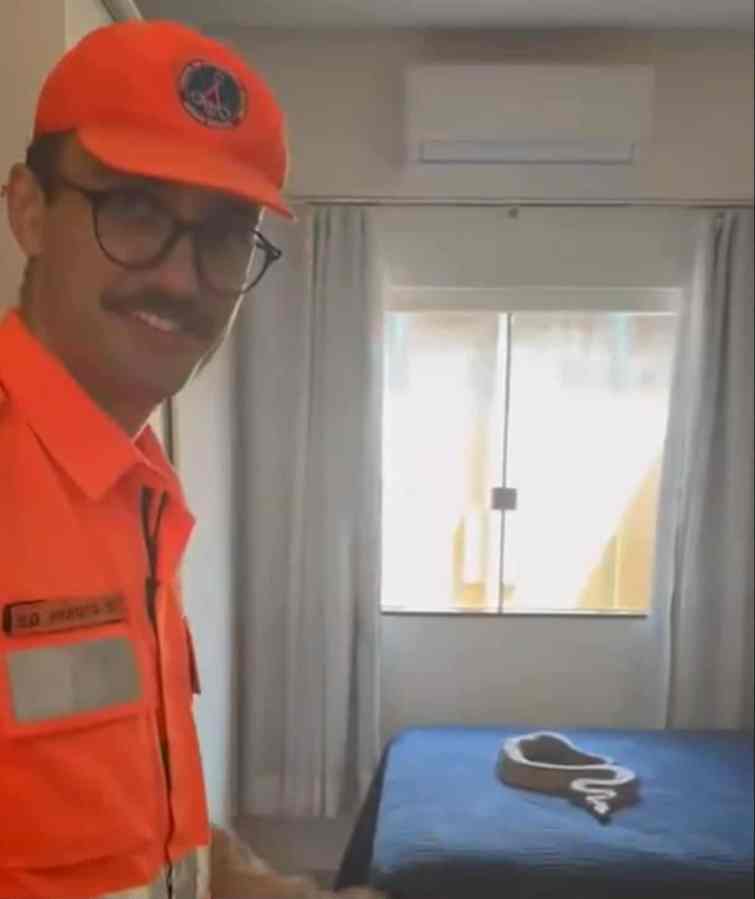 Bombeiros resgatam jiboia em cima de cama em residência de Unaí