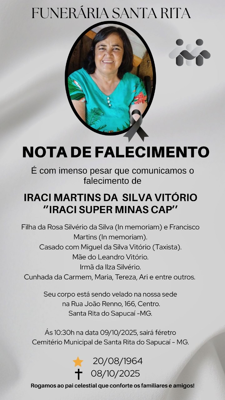 A imagem da nota é fornecida pela Funerária Santa Rita.