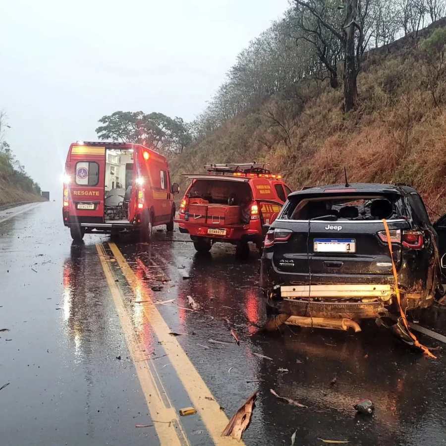 Chuva intensa provoca colisão entre Renegade e Hilux na BR-491; três pessoas ficam feridas