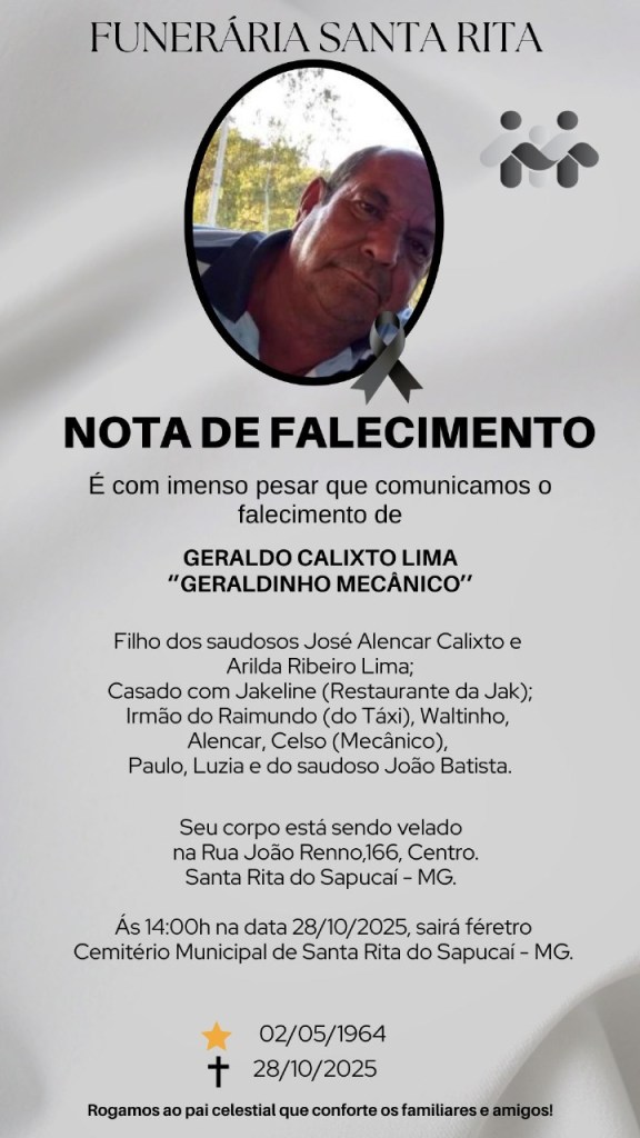 A imagem da nota é fornecida pela Funerária Santa Rita.