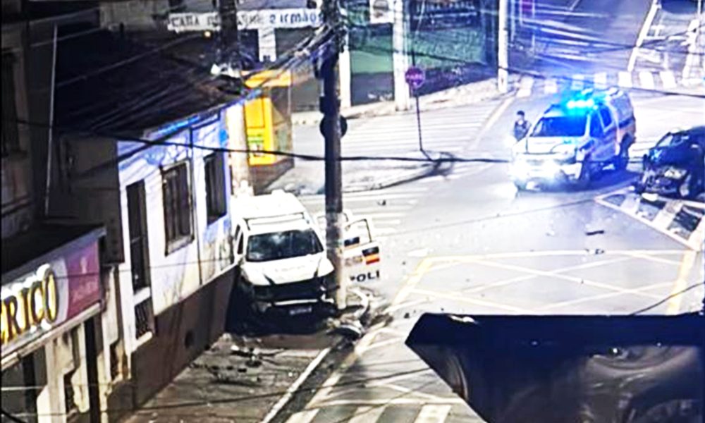 Uma viatura da Polícia Militar se envolveu em um acidente com um carro na madrugada deste domingo (02), no Centro de Pouso Alegre. A colisão ocorreu por volta das 3h, na Praça Duque de Caxias, durante uma perseguição a uma motocicleta que havia fugido de uma abordagem policial.