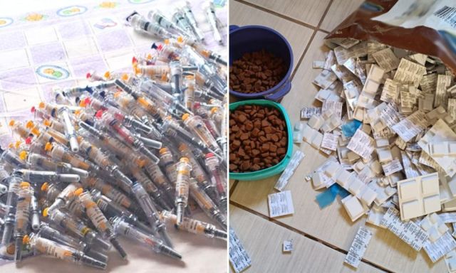 Nos locais vistoriados, os policiais apreenderam celulares, notebooks, embalagens, medicamentos com indícios de falsificação, máquinas de cartão, além de seringas e munições encontradas em uma das residências.