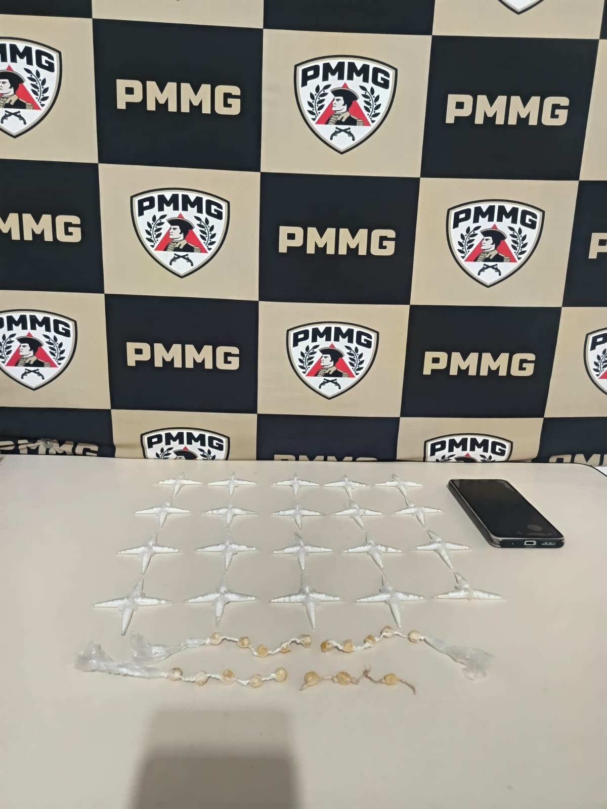 Durante a abordagem, os militares localizaram e apreenderam os materiais ilícitos abaixo relacionados. O suspeito recebeu voz de prisão em flagrante e foi conduzido à presença da autoridade policial de plantão.
