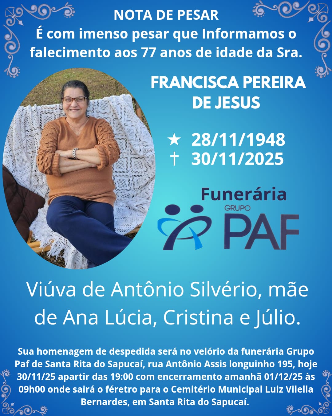 NOTA DE FALECIMENTO – Francisca Pereira de Jesus