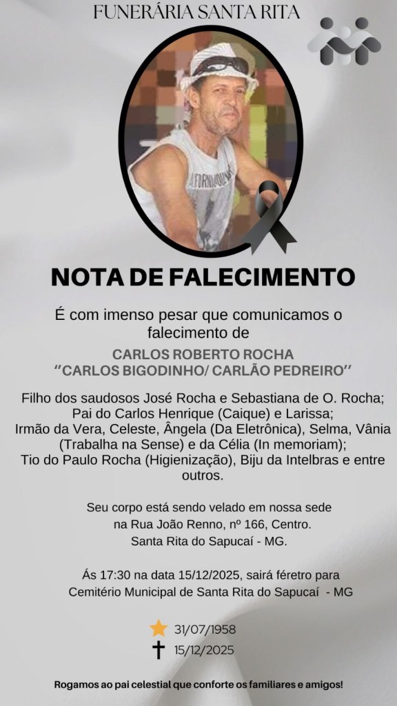 Nota de Falecimento – Carlos Roberto Rocha