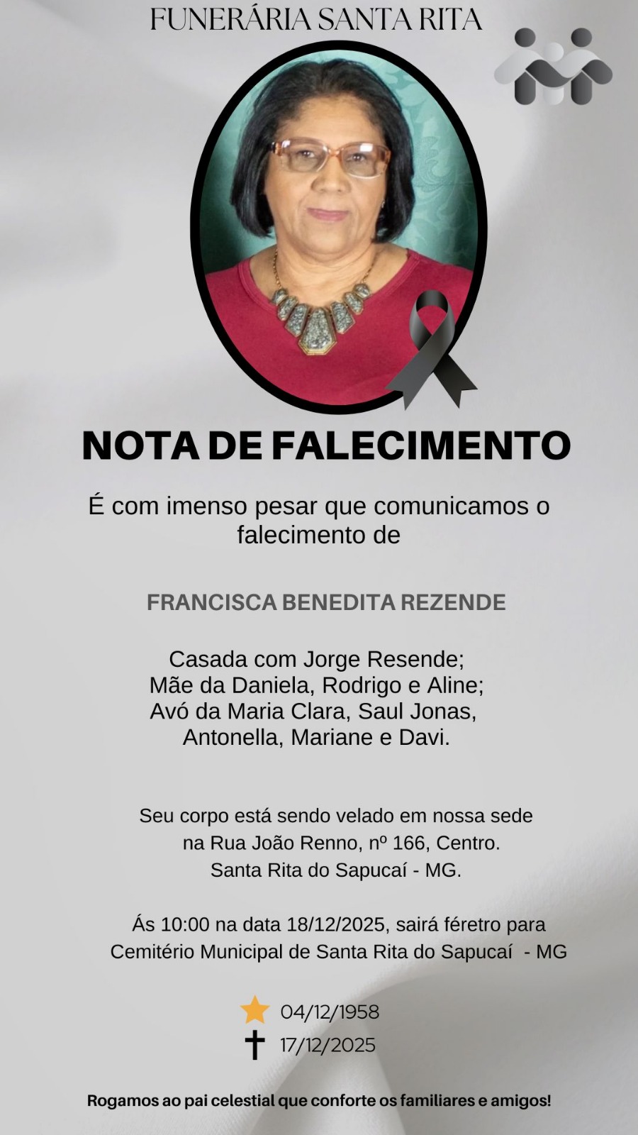 NOTA DE FALECIMENTO – Francisca Benedita Rezende