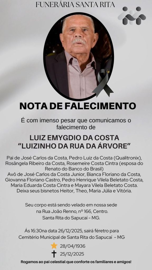 NOTA DE FALECIMENTO – Luiz Emygdio da Costa